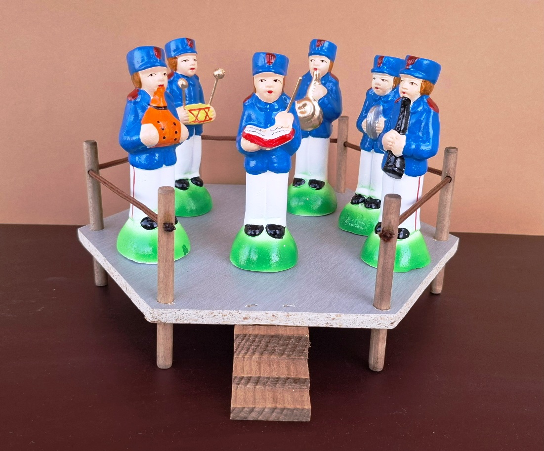 Palco em forma de coreto com banda de 6 músicos com aproximadamente 12cm.