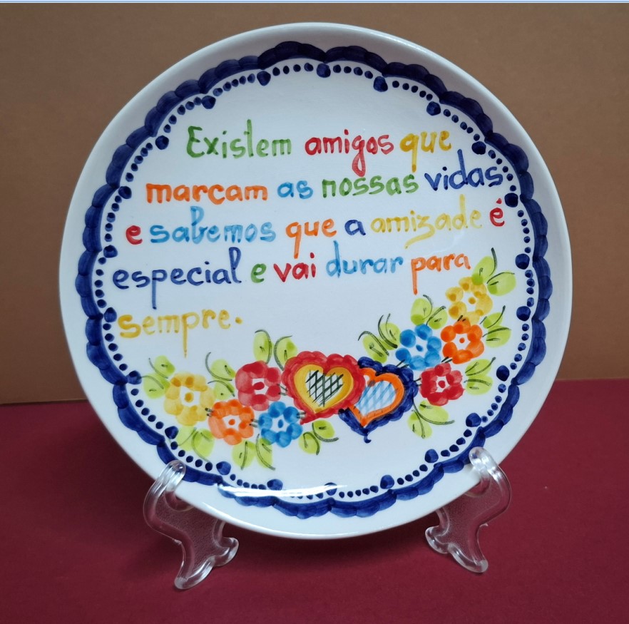 Prato 16cm x 16cm – Lenço dos namorados 8.00 € Prato com decorações do lenço dos namorados pintado à mão em cerâmica vidrada. Este prato contém versos variados inspirados nos típicos lenço dos namorados de Vila Verde. Prato com 16cm de diâmetro. REF: V021 Availability: Em stock Quantidade de Prato 16cm x 16cm - Lenço dos namorados Adicionar Descrição Prato com decorações do lenço dos namorados pintado à mão em cerâmica vidrada. Este prato contém versos variados inspirados nos típicos lenço dos namorados de Vila Verde. Prato com 16cm de diâmetro. Arte do Povo – Artesanato Online Produtos Relacionados Santo António 24.50 € Andorinha – com amor 3.20 € – 5.85 € Santiago 16cm – Lenço dos namorados 30.00 € Vaso decorativo em forma de busto de casal com olhos abertos 26.00 €