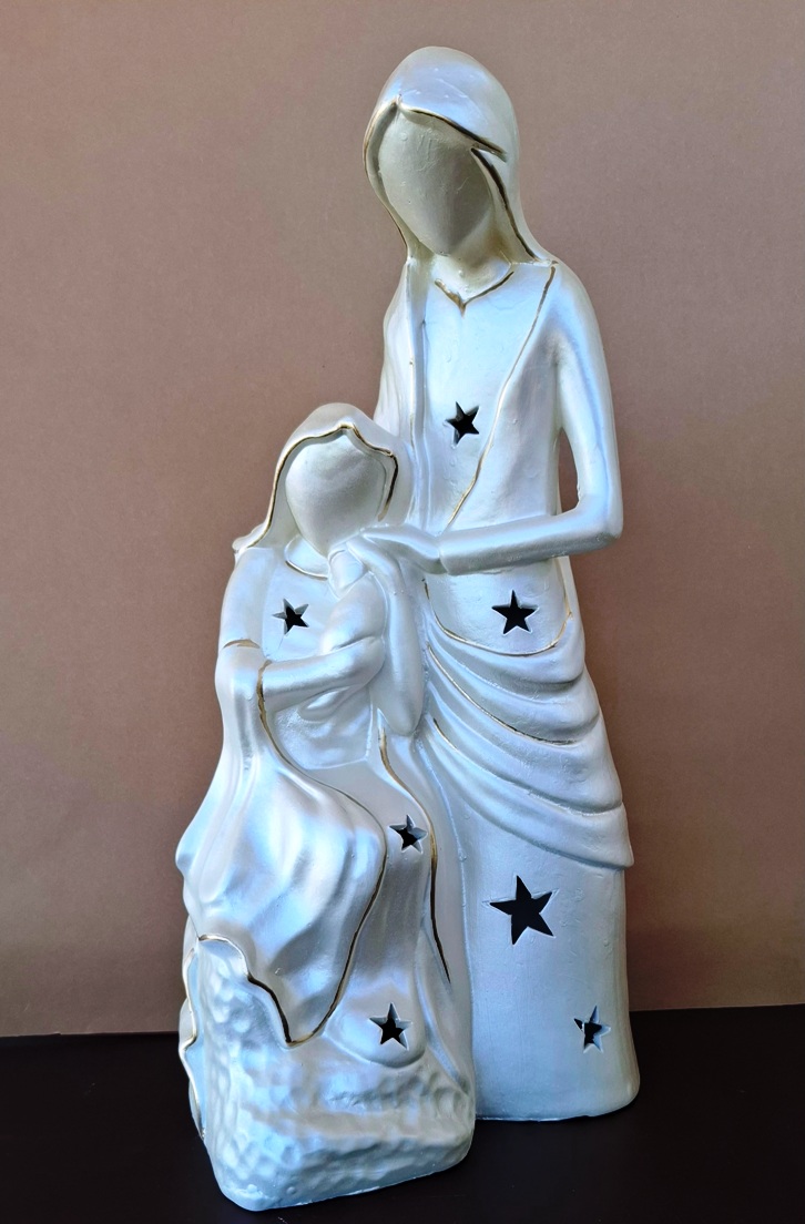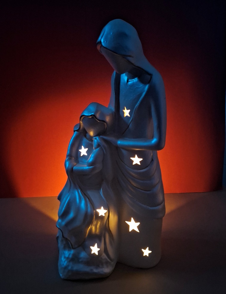 Presépio estilizado com S. José a segurar no ombro de Maria.